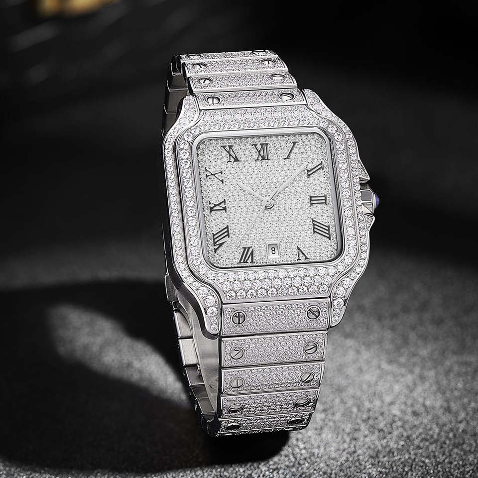 Reloj mecánico de lujo para hombre, superventas, de gama alta, con número romano cuadrado de diamante completo, reloj de pulsera mecánico de lujo 2025