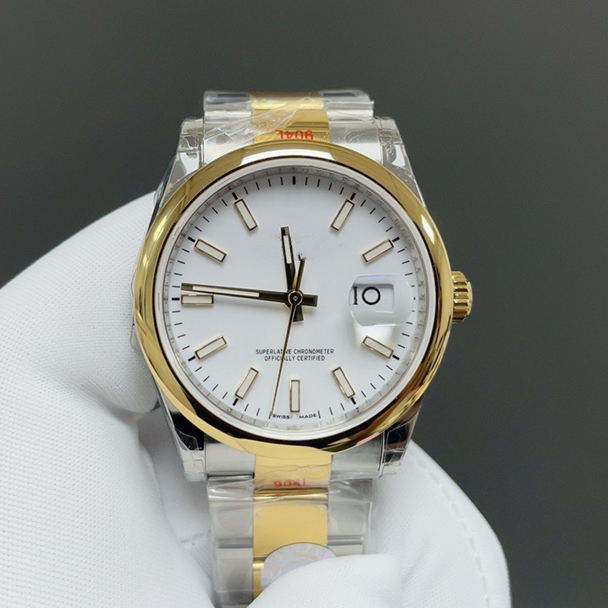 Reloj mecánico para hombre de alta gama 2025 con calendario de dos tonos y grabado de diamantes para hombres de negocios...