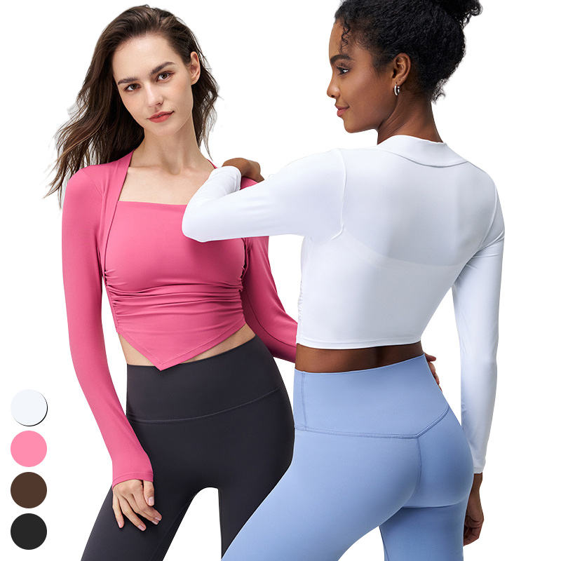 Ropa para correr de alta intensidad 2025, almohadillas fijas con cuello cuadrado, camisetas deportivas de manga larga para entrenamiento, camisetas de Yoga para mujer
