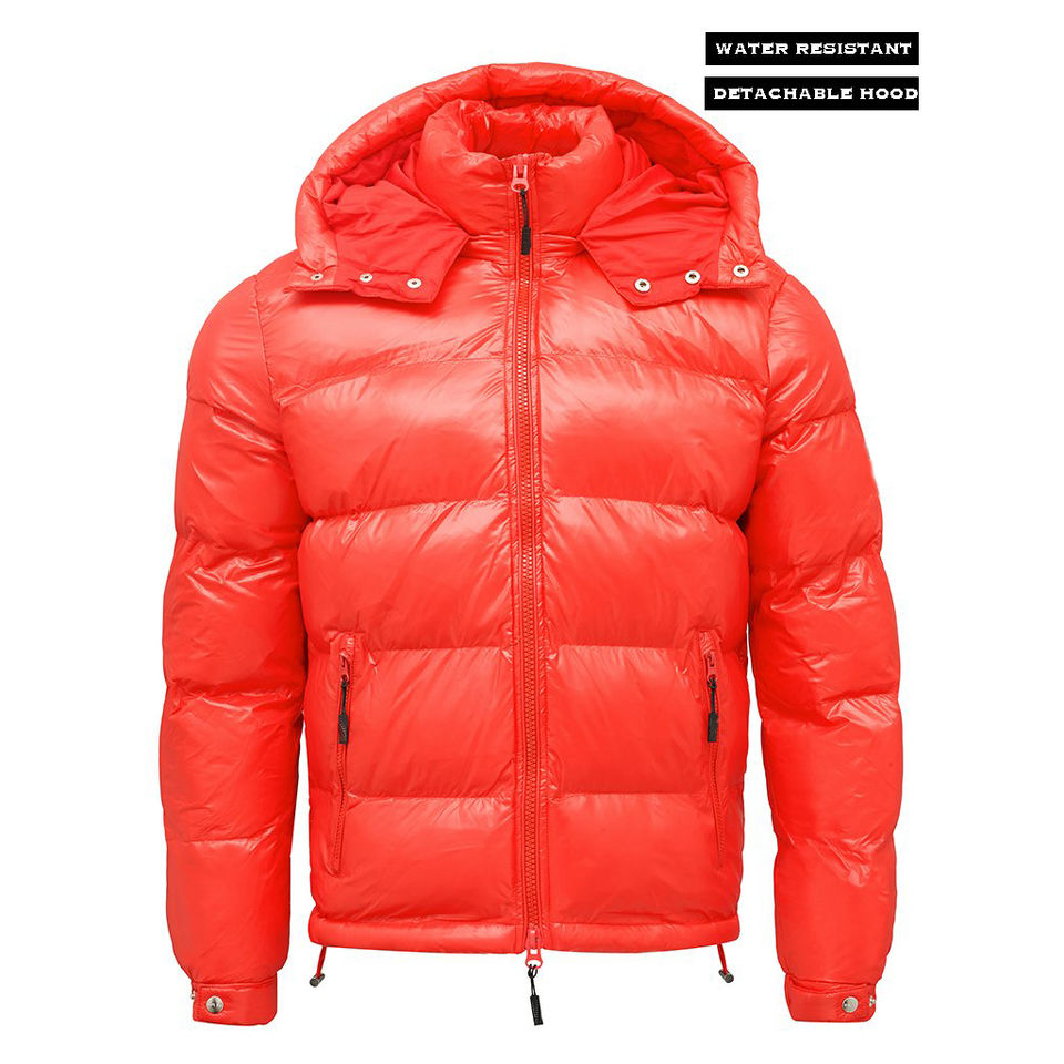 Chaqueta acolchada de invierno cálida para exteriores con logotipo personalizado de alta calidad 2025 para hombre CHAQUETA PUFFER BRILLANTE-ROJO clásico