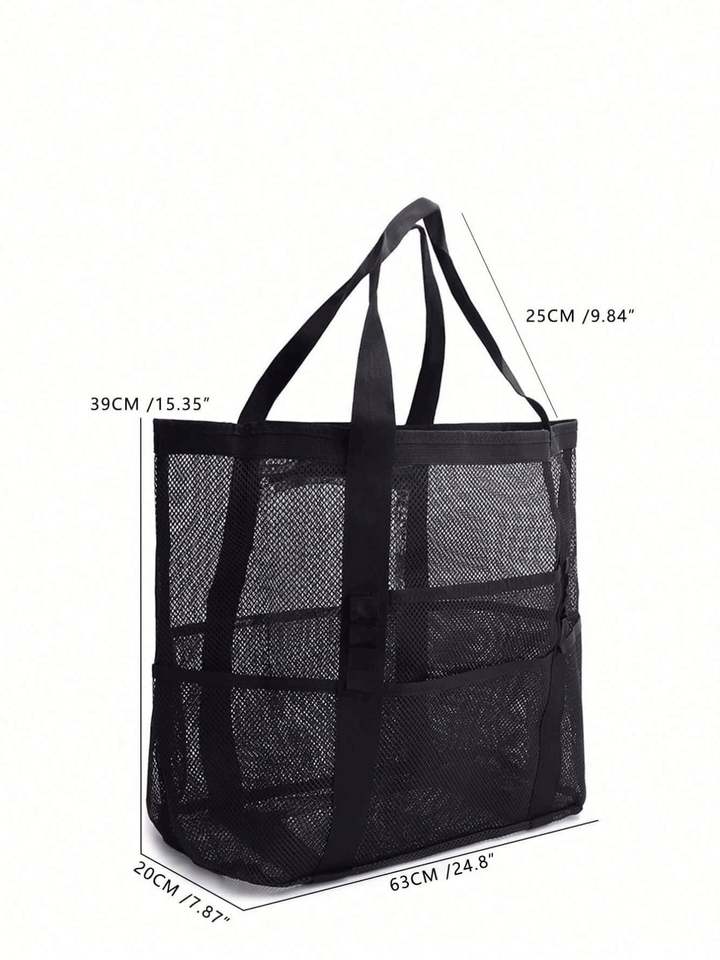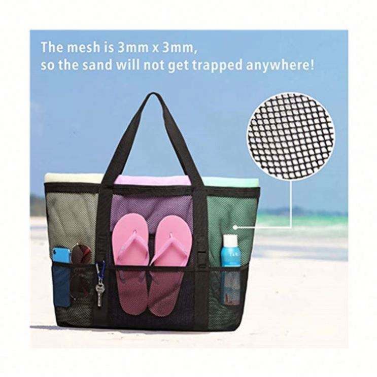 Bolsa de Compras de Malla Azul con Logotipo Personalizado de Alta Calidad 2025, Bolsas de Playa de Verano de Malla de Poliéster Negras