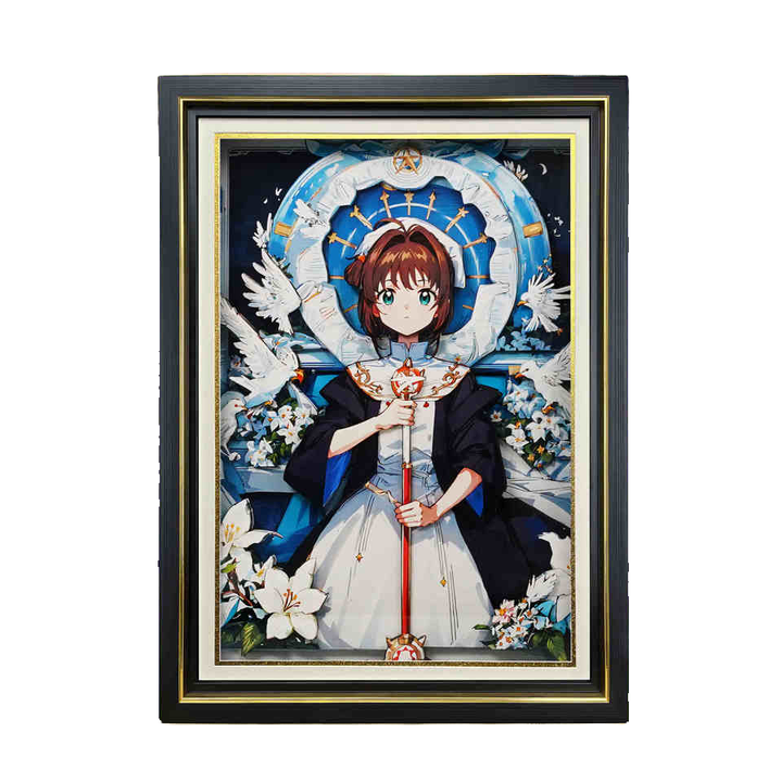 2025 alta calidad hecho a mano 3D Cardcaptor Sakura Anime Girl pintura papel artesanía decoración del hogar con iluminación regalo marco de fotos