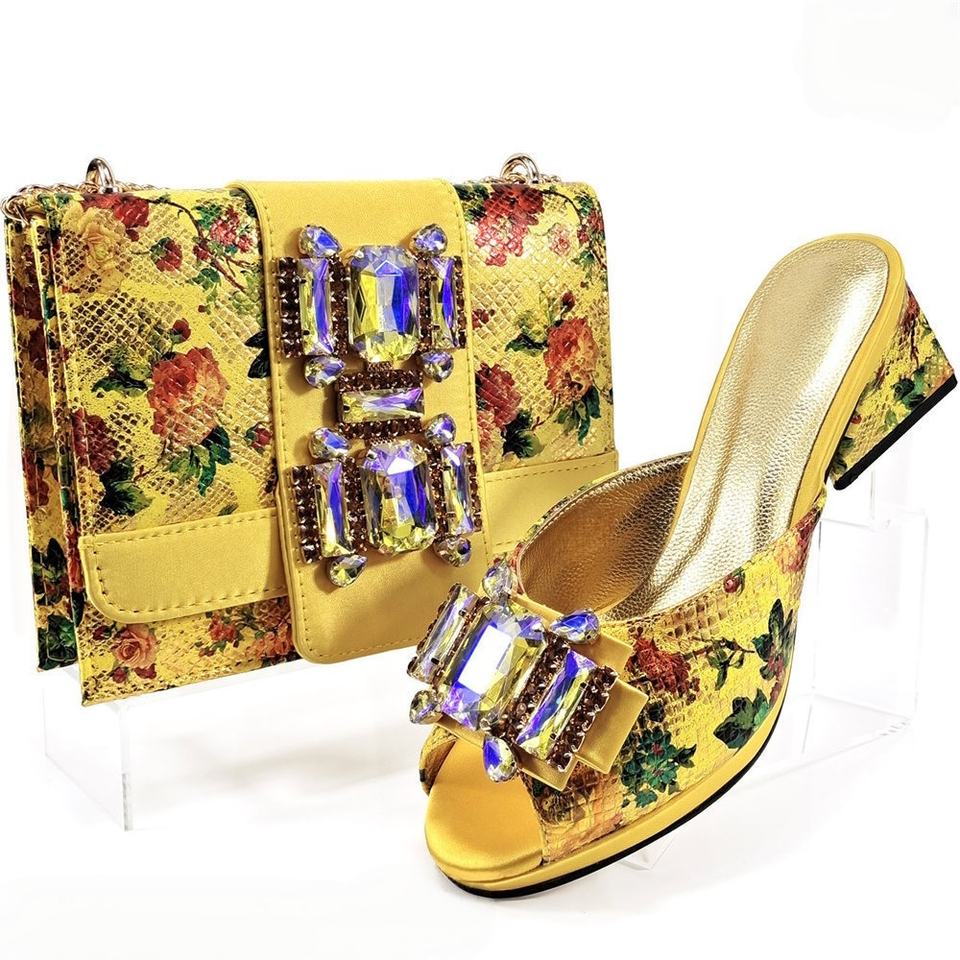 2025 zapatos de zapatilla de boda de cuero PU con diamantes de imitación de lujo de alta calidad para mujer con conjunto de bolso plano antideslizante para fiestas de verano