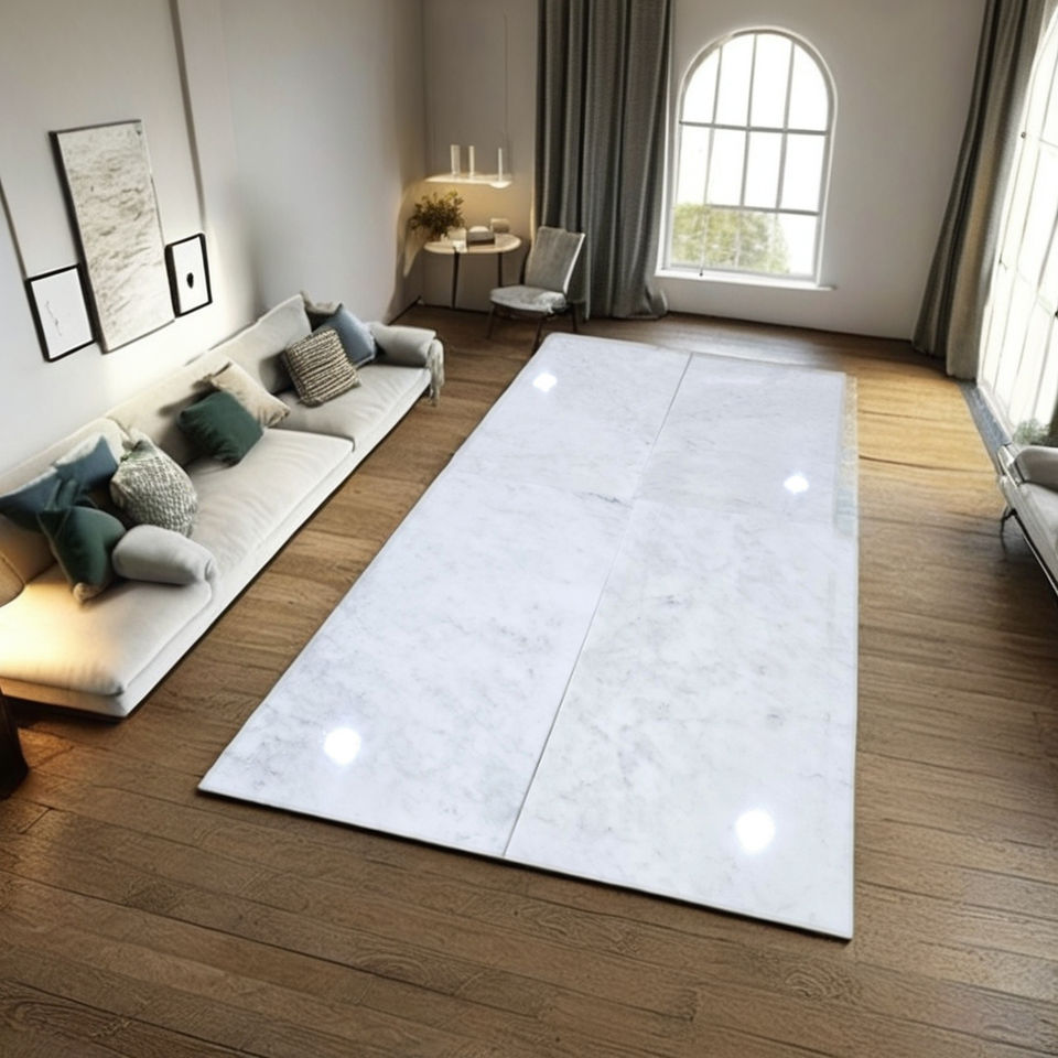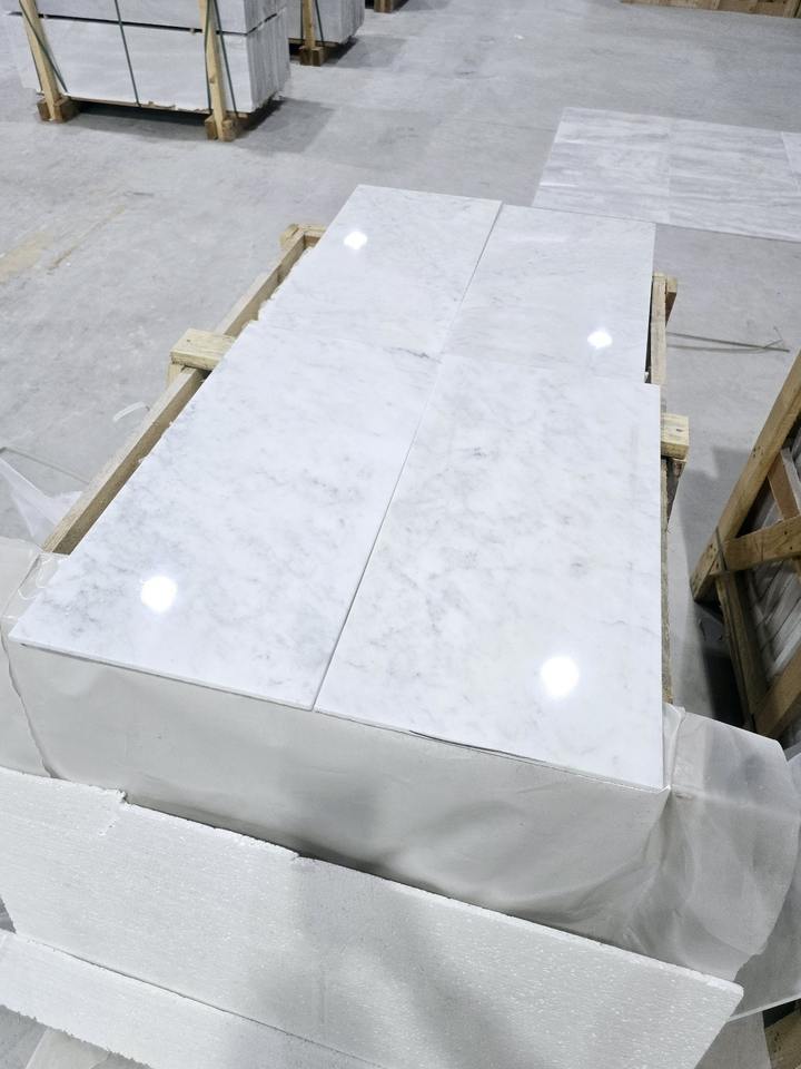 Losa de mármol moderna de alta calidad 2025, patrón de Carrara Bianco blanco, piedra Natural de ónix, decoración de suelo de pared con clic cuadrado pulido