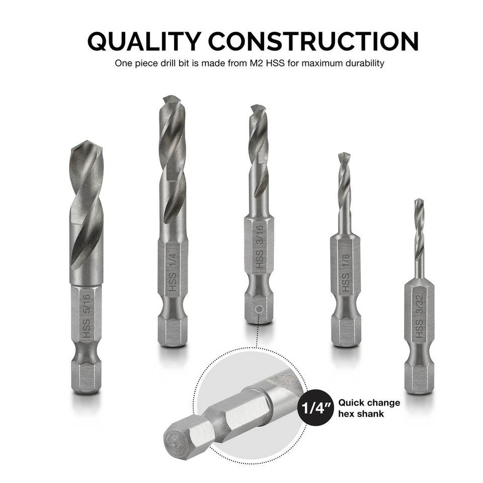 Juego de brocas gruesas cortas de alta velocidad 2025 para Cambio rápido 1/4 Taladro helicoidal de vástago hexagonal Perforación de acero inoxidable de metal