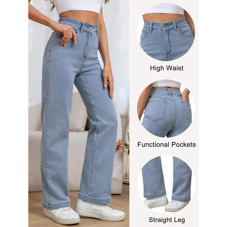 2025 pantalones vaqueros holgados elásticos de moda de cintura alta para mujer-estilo de pantalones vaqueros de pierna ancha holgados transpirables