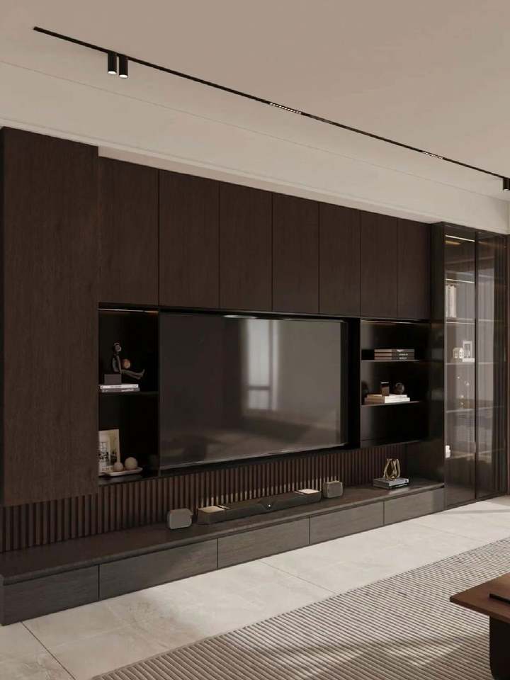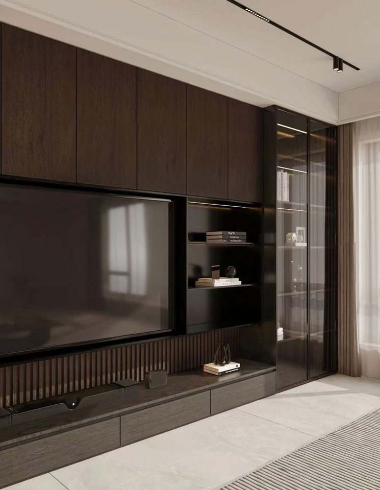 2025 caliente moderno soporte de TV de madera maciza pared completa Simple hogar TV Fondo estante de almacenamiento integrado sala de estar TV gabinete de vidrio