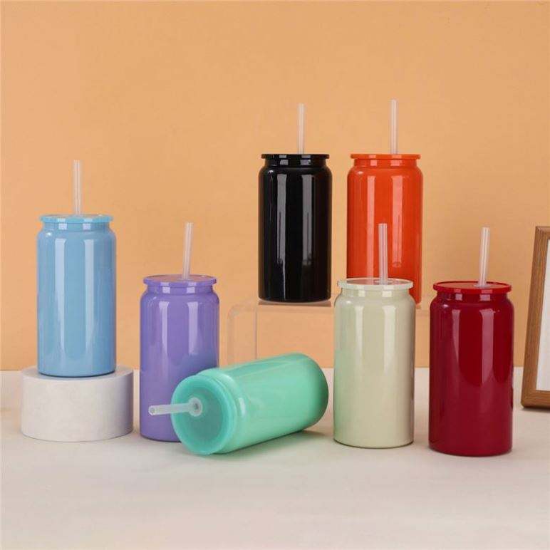 2025 gran oferta cerveza bebiendo plástico 16Oz colorido Color sólido negro plástico cerveza lata con tapa