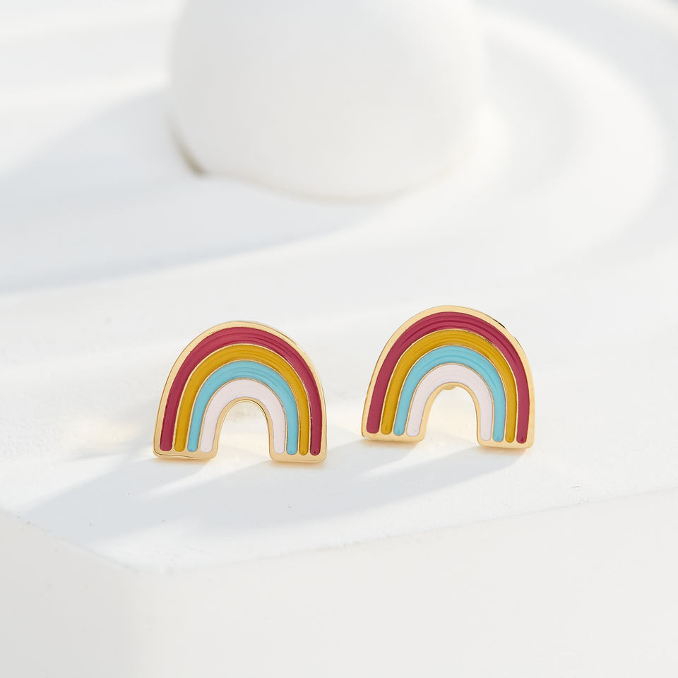 Pendientes de Acero Inoxidable con Baño de Oro de 18K y Esmalte Colorido Arcoíris para Niños, Venta Directa de Fábrica, Oferta 2025