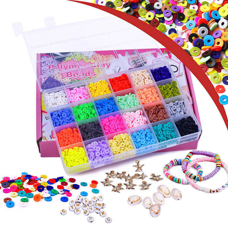 Gran oferta 2025, cuentas de arcilla polimérica coloridas de alta calidad, cuentas de arcilla decorativas redondas planas de 6mm, juego de cuentas de arcilla Diy con dijes
