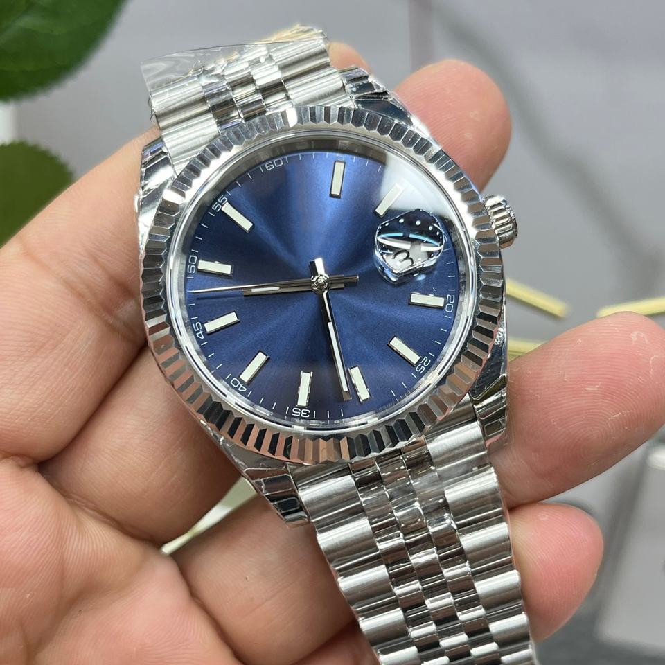 Reloj mecánico de lujo para hombre de alta gama 2025 con correa de acero, esfera azul, visualización de fecha, Reloj clásico