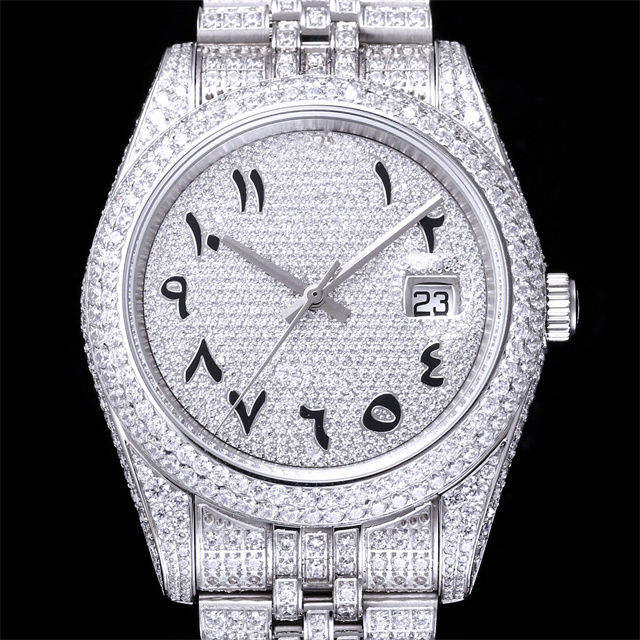 Reloj mecánico de lujo para hombre de alta gama 2025 con pantalla de fecha de número arábigo de diamante completo