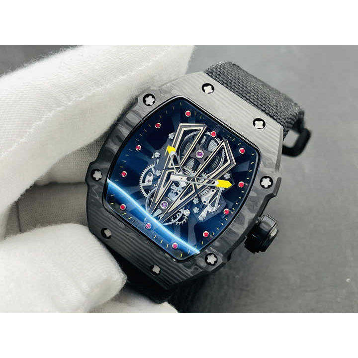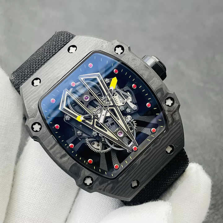 Reloj Mecánico de Lujo para Hombre, Diseño Esqueleto, Fibra de Carbono, Correa Auténtica, Estilo Hip Hop, Hecho en China, Gran Venta 2025