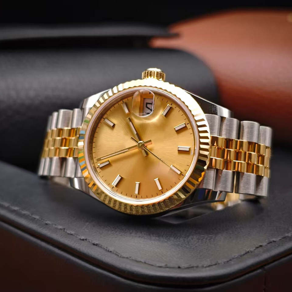 2025 Reloj mecánico superventas, calendario doble dorado, reloj de negocios grabado con diamantes