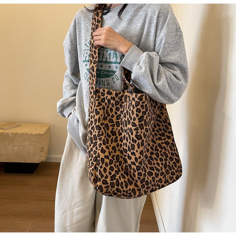 Bolso Tote de Lona con Estampado de Leopardo, Gran Capacidad, Cierre de Cremallera, para Mujer, Estilo 2025, para Todas las Temporadas, Hecho en Zhejiang