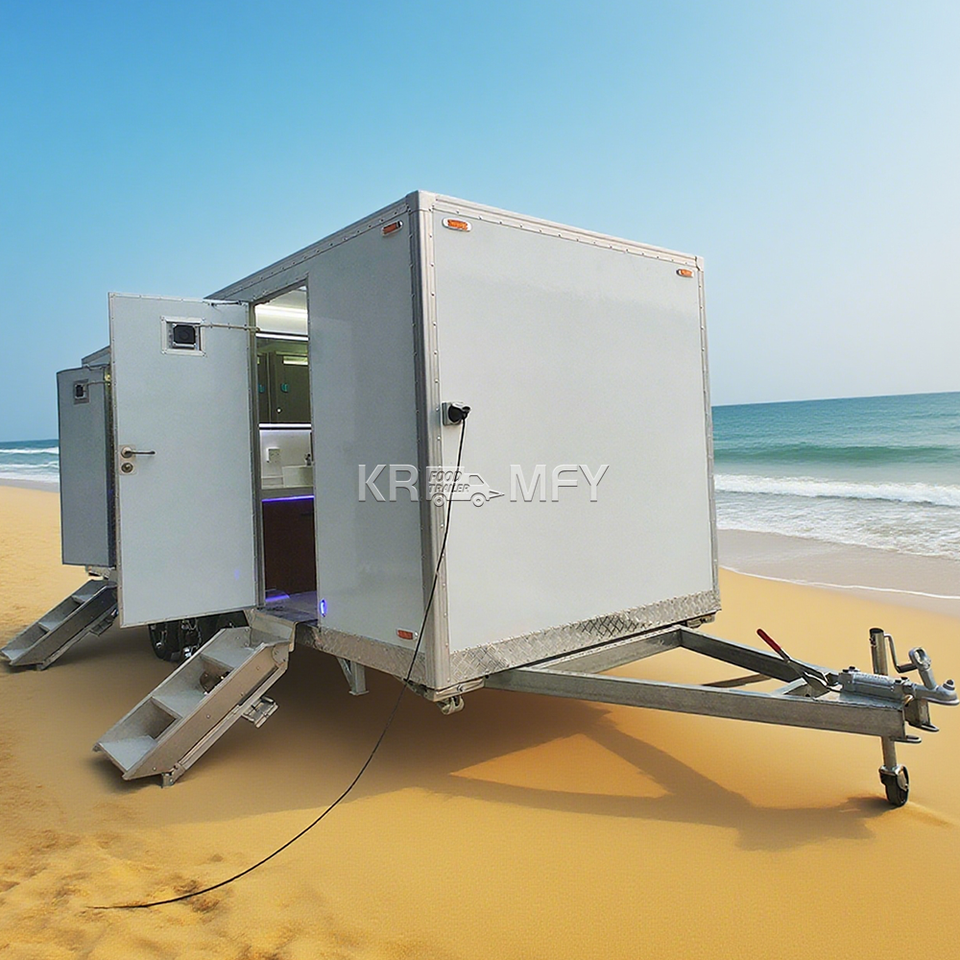2025 En stock Baño móvil Ducha 4 puestos Inodoro portátil Baño Remolque