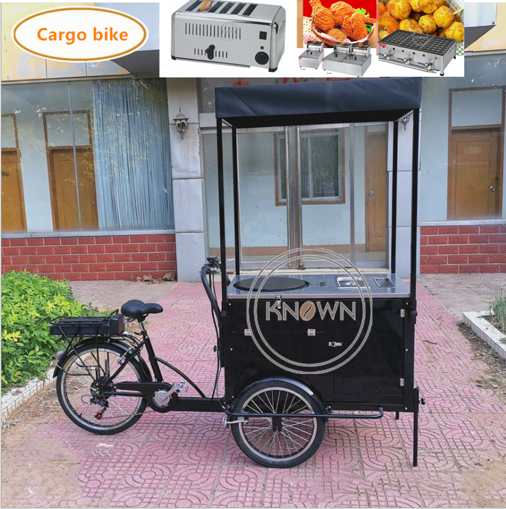 Carrito de venta de panqueques de hierro 2025, triciclo de equitación inversa, carrito de aperitivos, flotador al por menor, fabricantes de personalización profesional