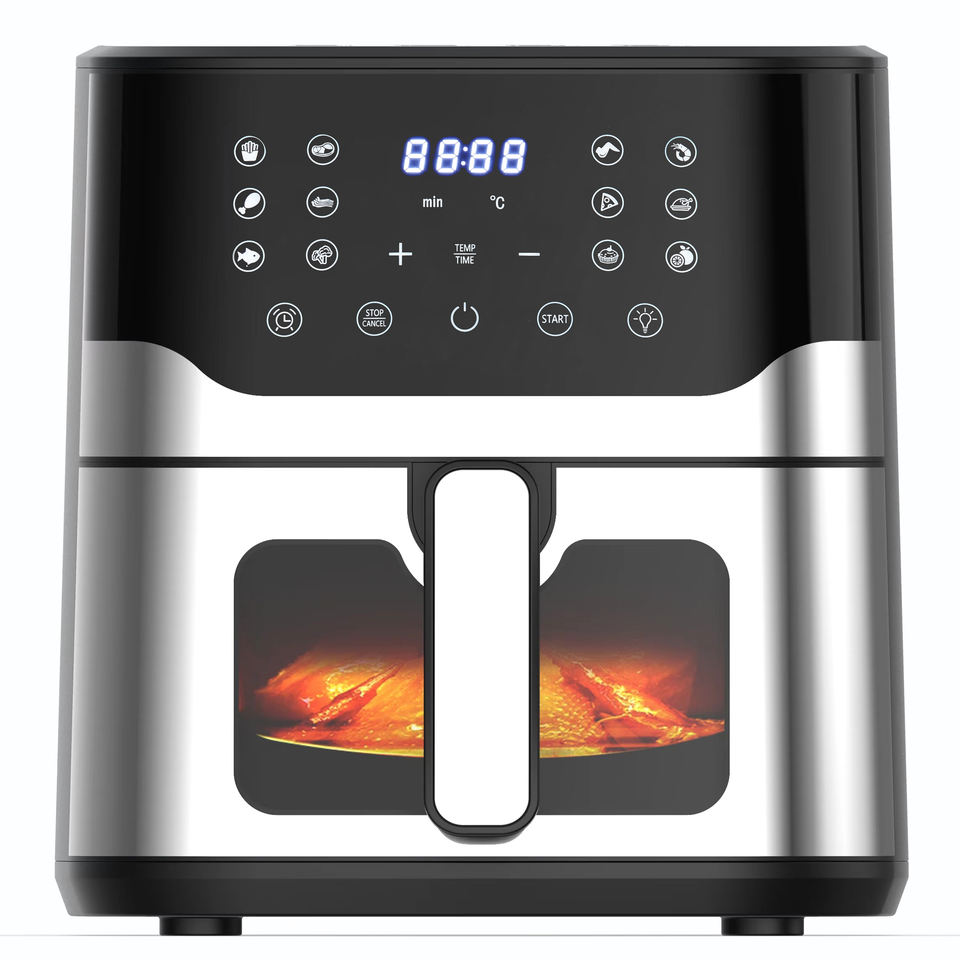2025 Aparato de cocina MÁS NUEVO Más vendido en EE. UU. Sin aceite Pantalla táctil digital Freidora de aire visible 8L