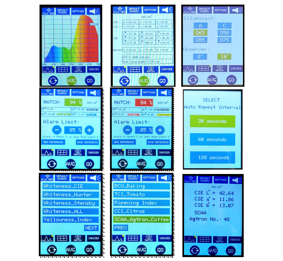 Other color attributes:Peak wavelength, color temperature CCT, XYZ, Yxy