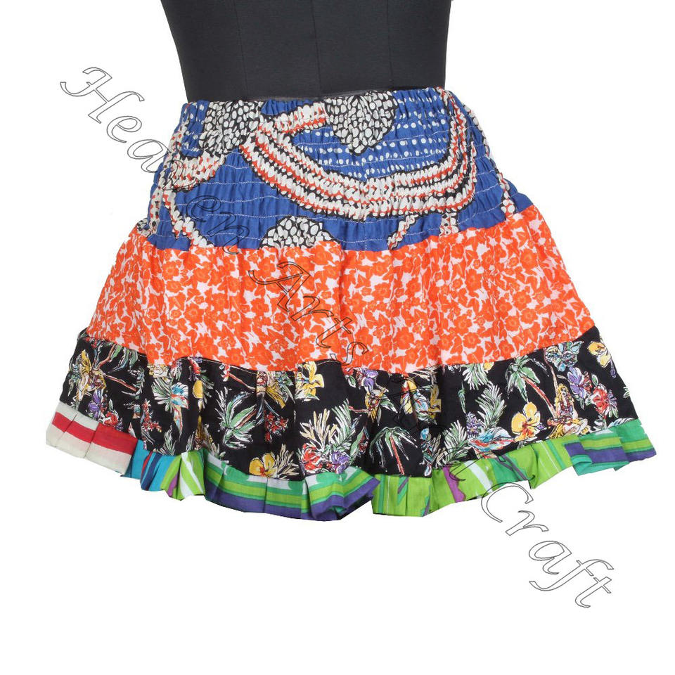 Palabras clave:Mini falda con parches de sari de algodón vintage