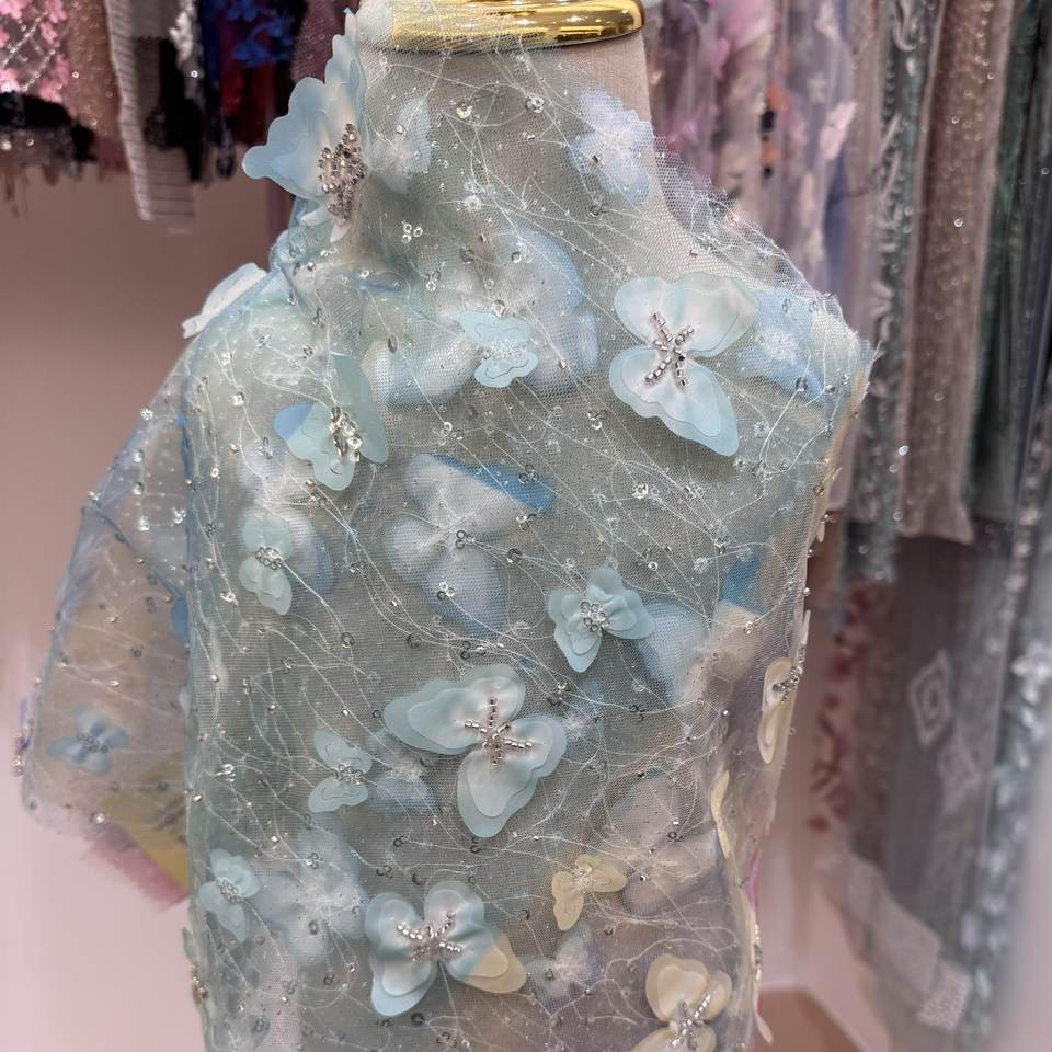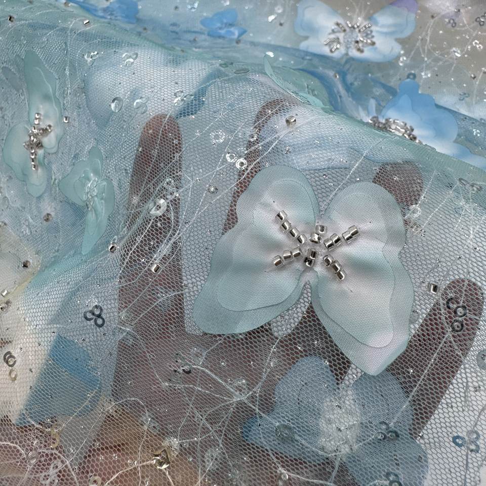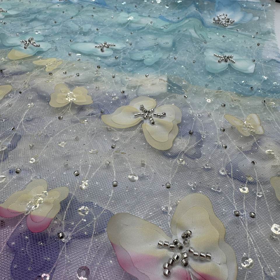 Tela de Tul con Lentejuelas y Bordado de Mariposas 3D en Color Degradado, Diseño Más Reciente de 2025, para Decoración de Bodas de Ensueño