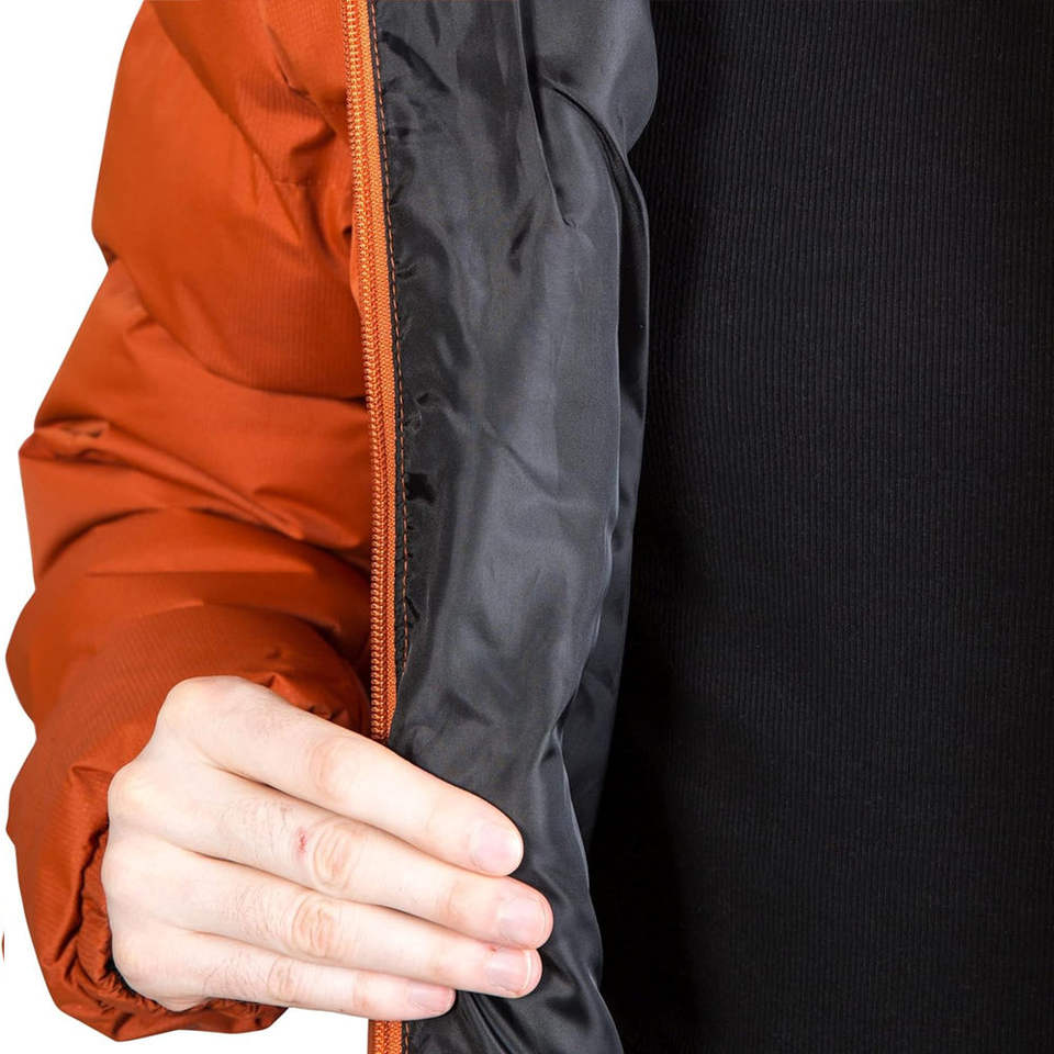 2025 último diseño, chaquetas acolchadas de Color naranja para hombre, 100% tela de poliéster pesado con capucha desmontable, chaqueta cálida para hombre
