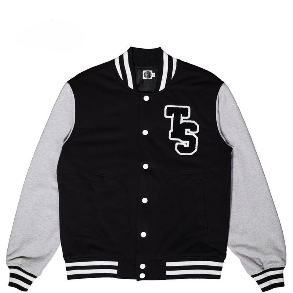 2025 última fábrica de chaquetas universitarias de béisbol personalizadas para hombres, manga de cuero empalmada, bolsillos bordados con letras, chaqueta con letras marrones