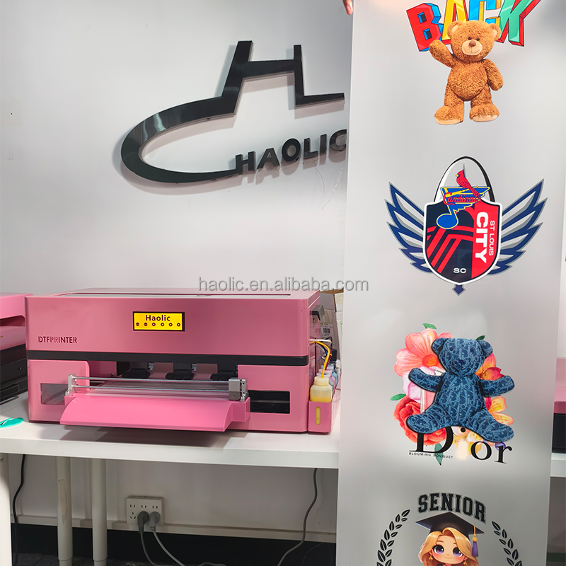 Impresora DTF Automática A3 Haolic Rosa Modelo 2025 XP600 con Kit de Impresora DTF, Máquina Multifuncional con Agitador de Polvo