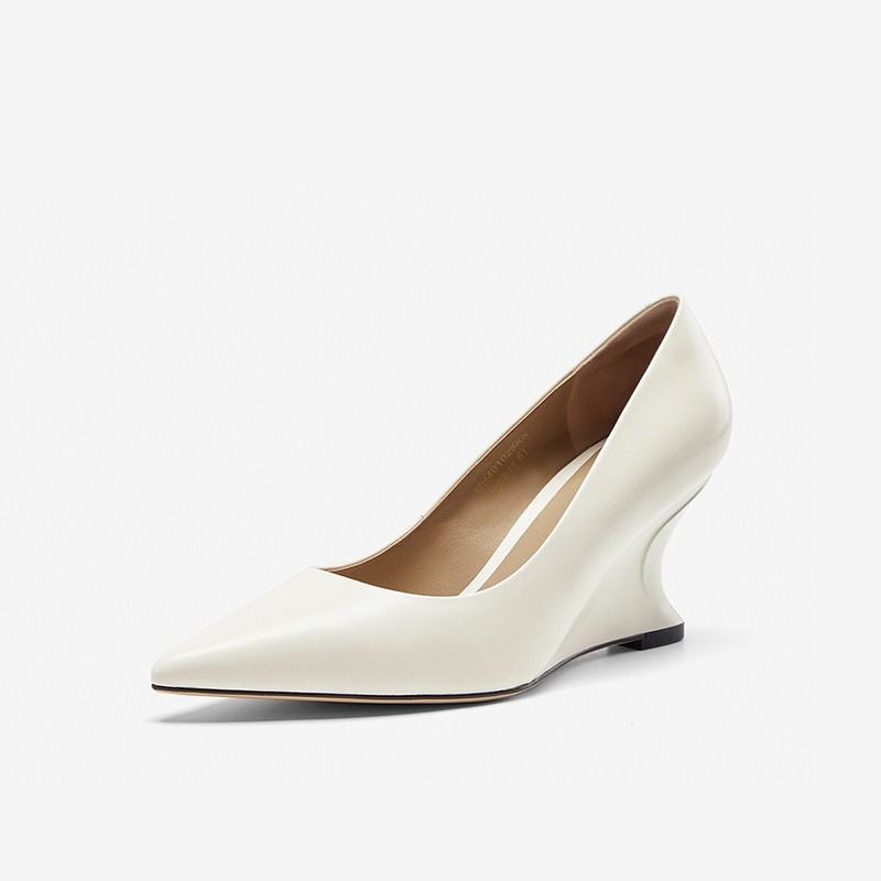 Zapatos de Tacón de Cuña de Piel Sintética con Punta en Pico, Talla Grande 43, 5 cm, Estilo Slip-On, Transpirables, para Verano 2025