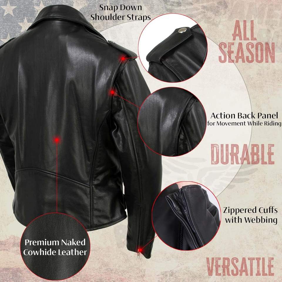2025 cuero USA MADE mujer negro Flaunt Premium clásico estilo motocicleta chaqueta de cuero modelo MLJKL5004