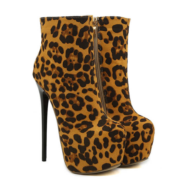 Botines de Tacón Alto con Cierre y Punta en Pico, Diseño de Leopardo 2025, Zapatos de Moda Casuales para Mujer