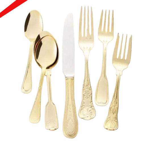 Juego de cubiertos con acabado dorado de Metal de diseño de lujo 2025 para hoteles y restaurantes