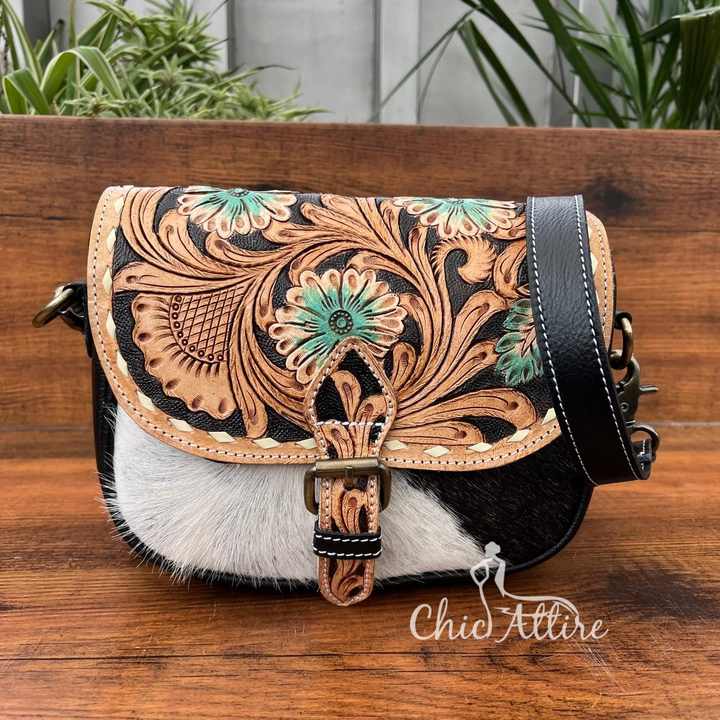 Nombre del producto:Mano Tooled cuero de vaca Crossbody bolsa de sillín