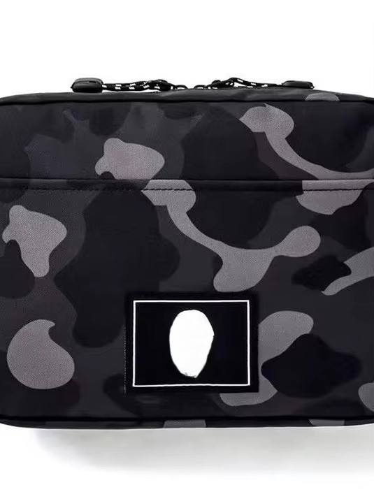 2025 Revista Apéndice Bape Bolsa diagonal de camuflaje negro con un hombro Monedero con cabeza de mono Juego de dos piezas
