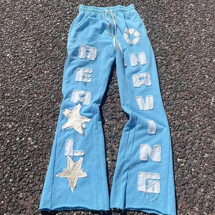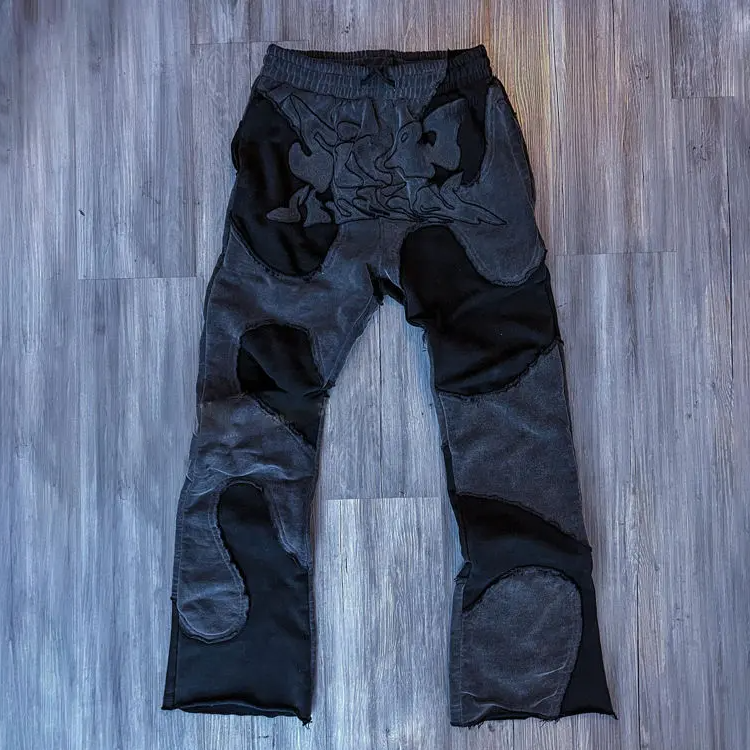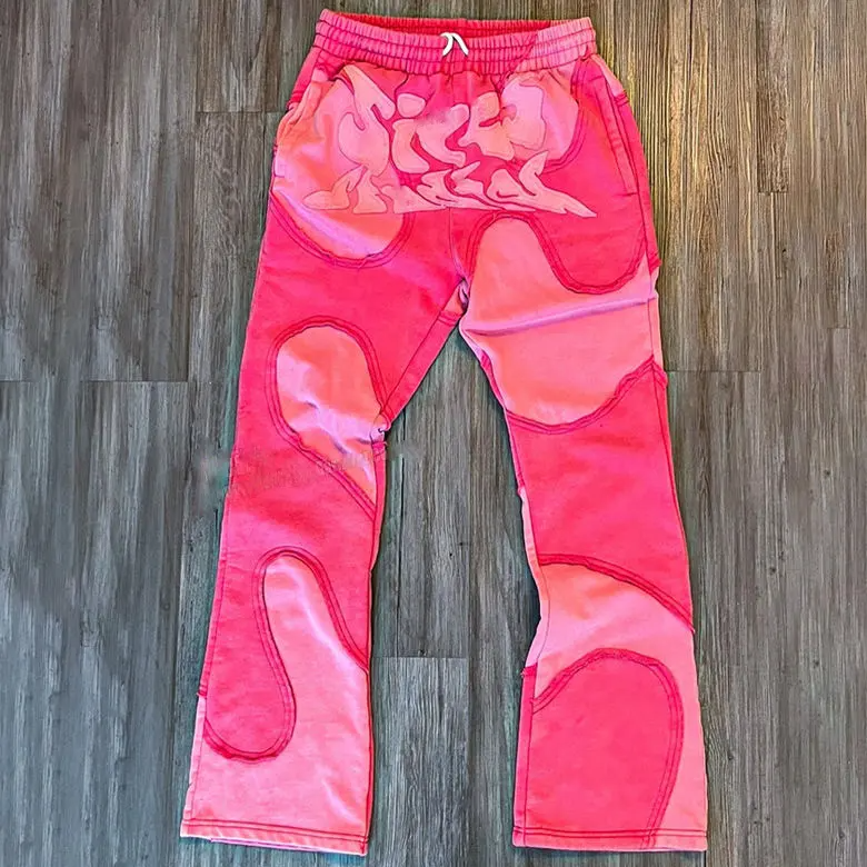 Pantalones acampanados con estampado de diseño personalizado de fabricante 2025, pantalones de chándal de pierna ancha apilados lavados al sol desteñidos para hombres