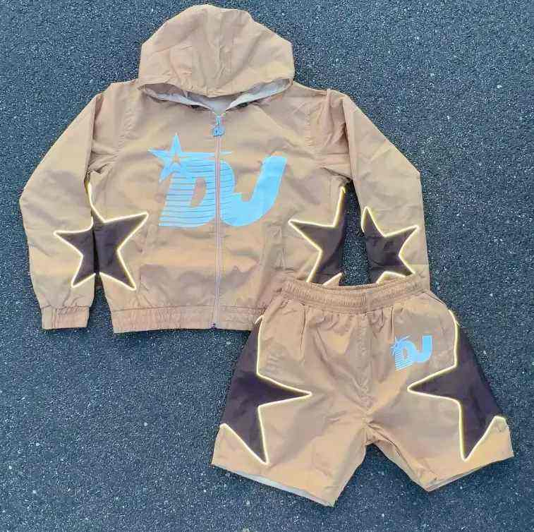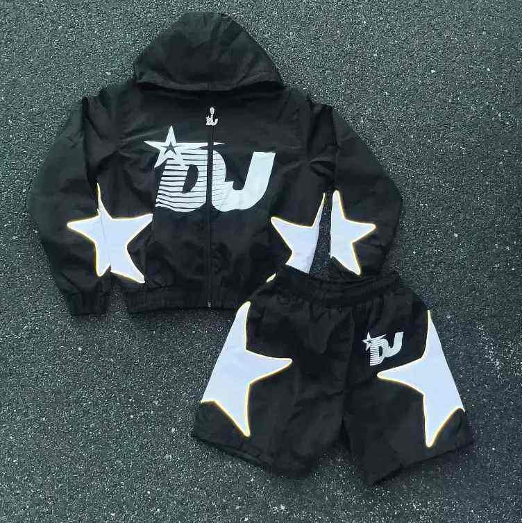 2025 conjuntos de dos piezas para hombre, chaqueta cortavientos personalizada, conjunto de chándal, conjunto de chándal corto cortavientos de dos piezas de nailon con cremallera reflectante