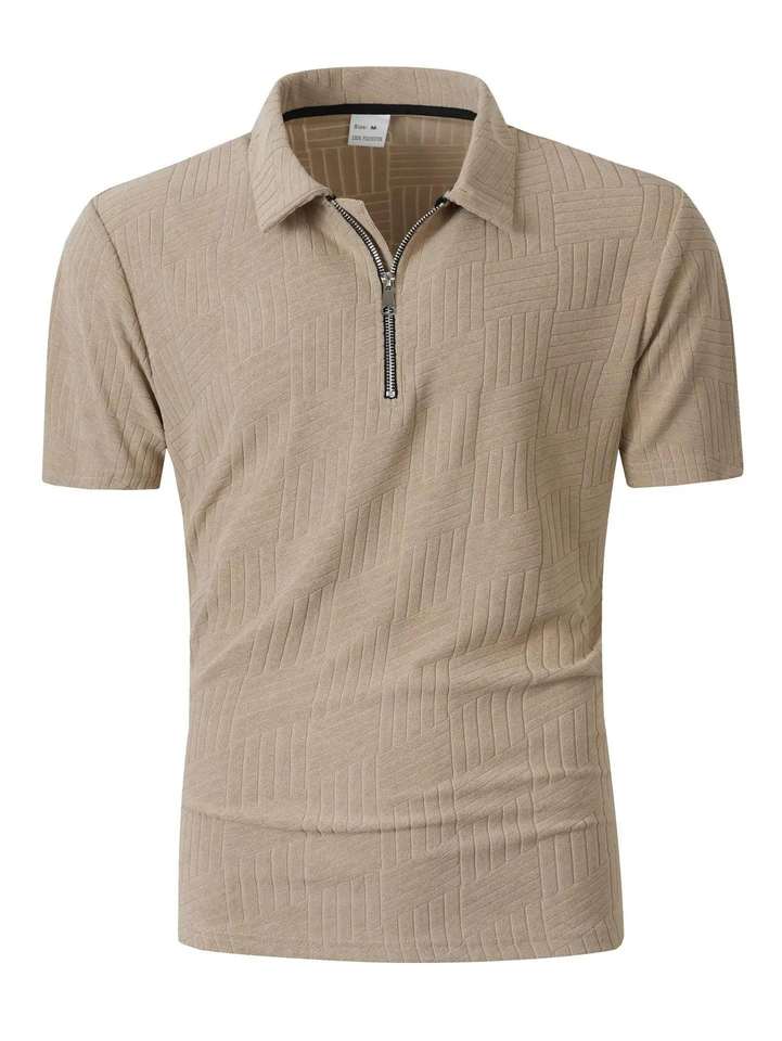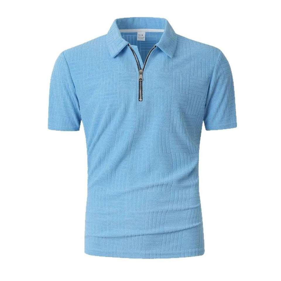 Camisa 2025 informal deportiva de lona de algodón 100% para hombre, sólida para cuello, manga corta, transpirable, de punto, con cremallera empalmada, holgada, rápida