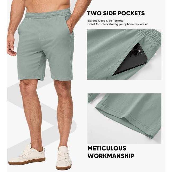 2025 hombres 100% algodón cintura elástica cordón pantalones cortos de sudor 9 \ "Casual Lounge Beach Jersey XL Logo ligero entrenamiento Jersey