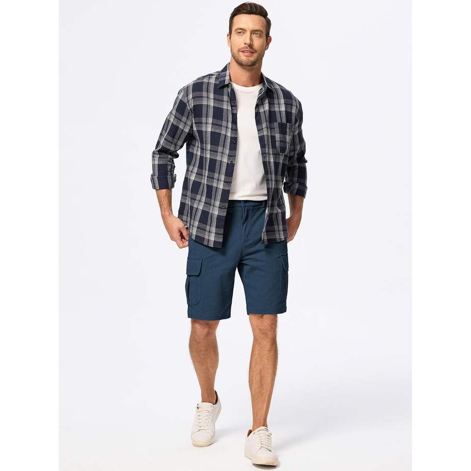 Pantalones cortos Cargo de cintura elástica informales para hombre 2025, pana ligera para senderismo al aire libre y trabajo, pantalones cortos de senderismo para hombre