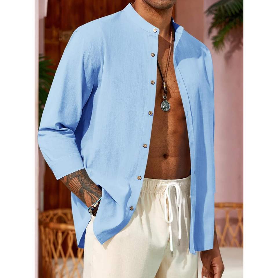 2025 camisa informal de lino para hombre 100% algodón 3/4 manga cuello abotonado estilo de playa de verano talla 6XL