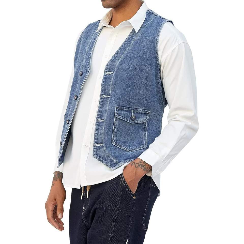 Chaleco vaquero bordado ajustado informal para hombre 2025, chaqueta ligera de poliéster con función a prueba de viento para actividades al aire libre