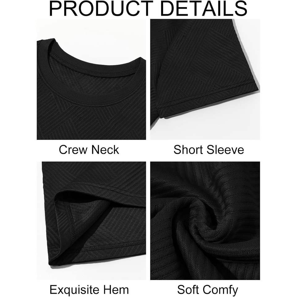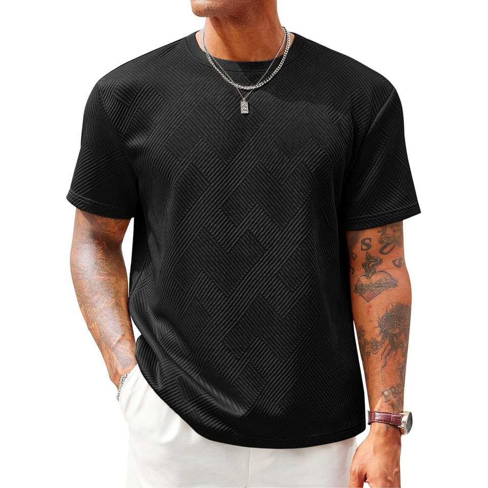 2025 camisetas informales de Jacquard liso para hombre, camiseta de Fitness de 220 gramos, camiseta elástica de manga corta con cuello redondo, Fitness texturizado