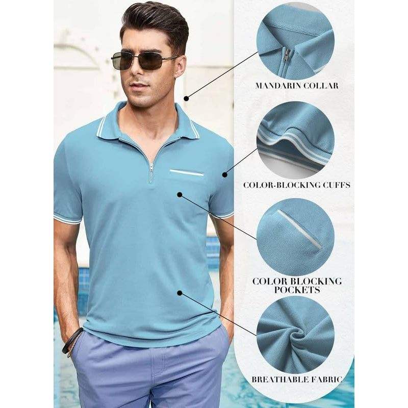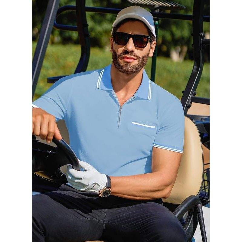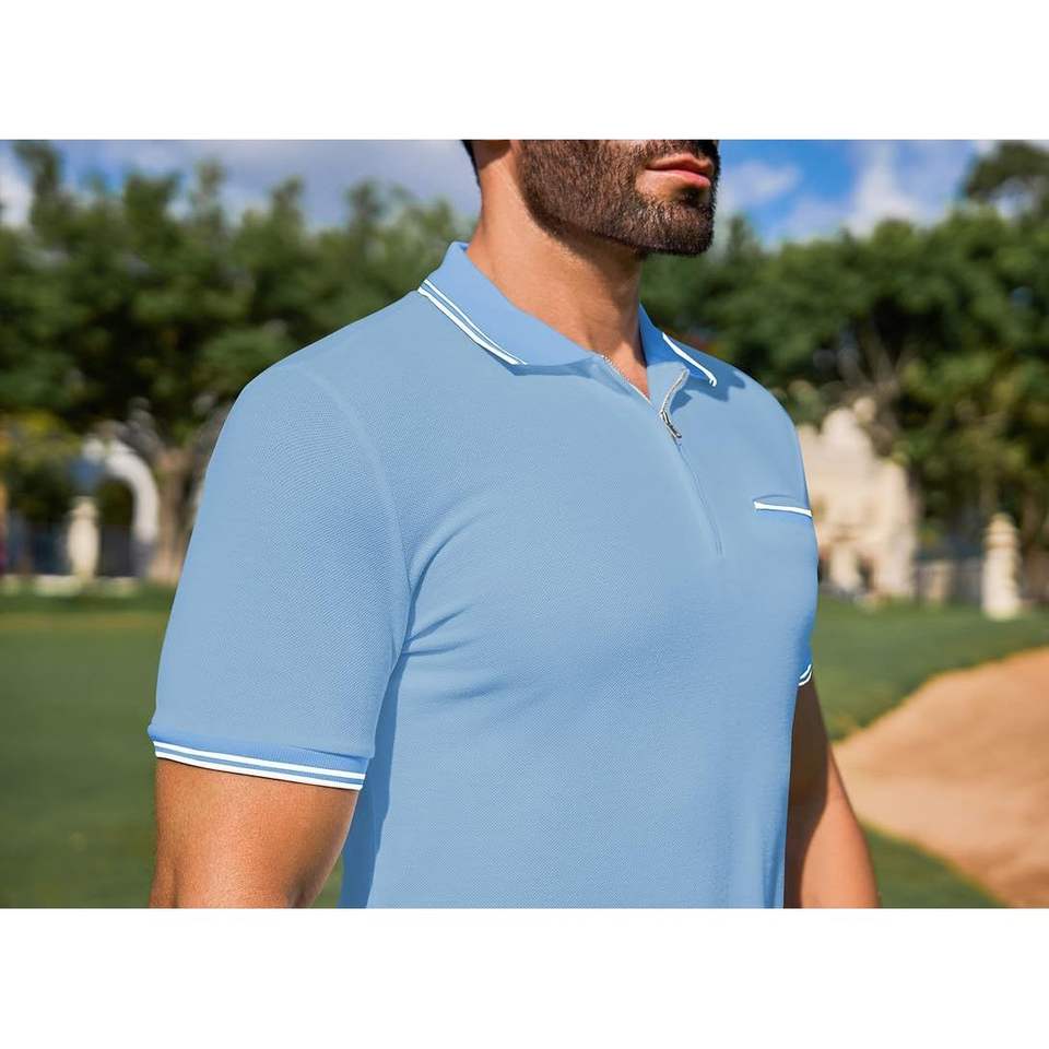 JMIERR-Polos informales de verano con cremallera para hombre, camisa ligera de manga corta con cuello de golf a rayas