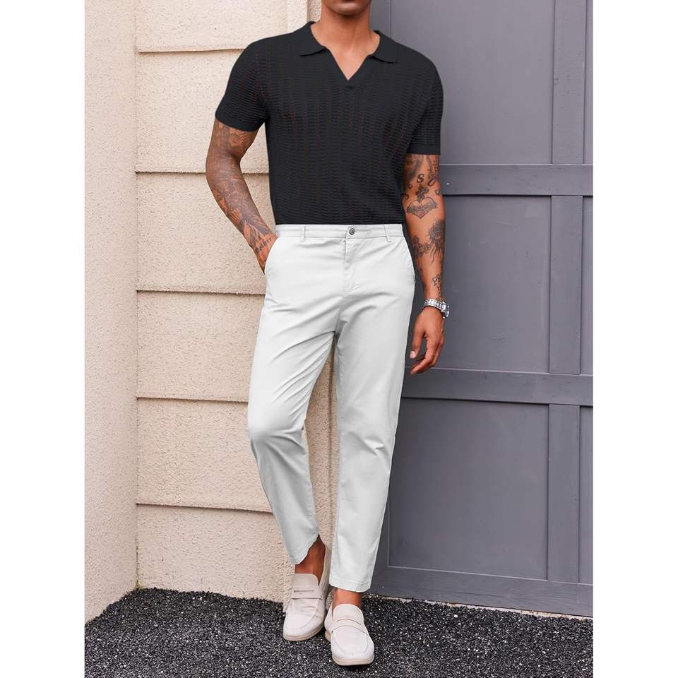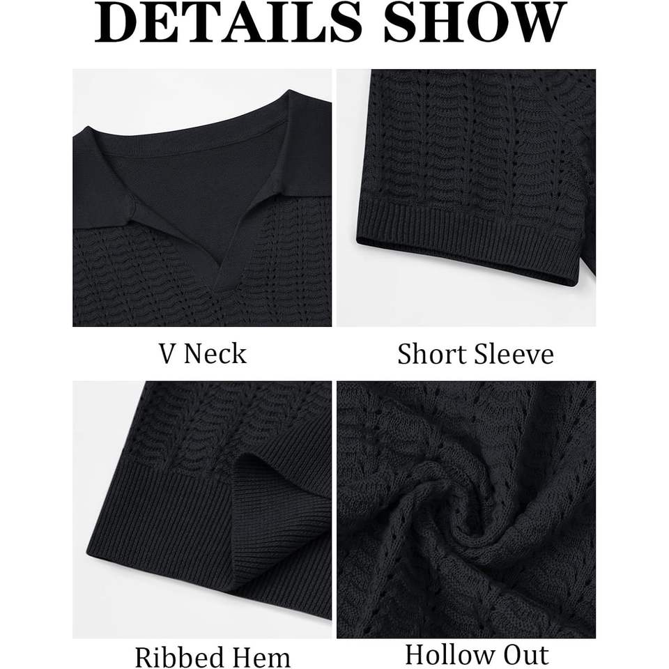 2025, camisa informal de verano de Golf con cuello en V para hombre, manga corta de punto alto para suéter de Polo, bordado antiarrugas, hueco oscuro