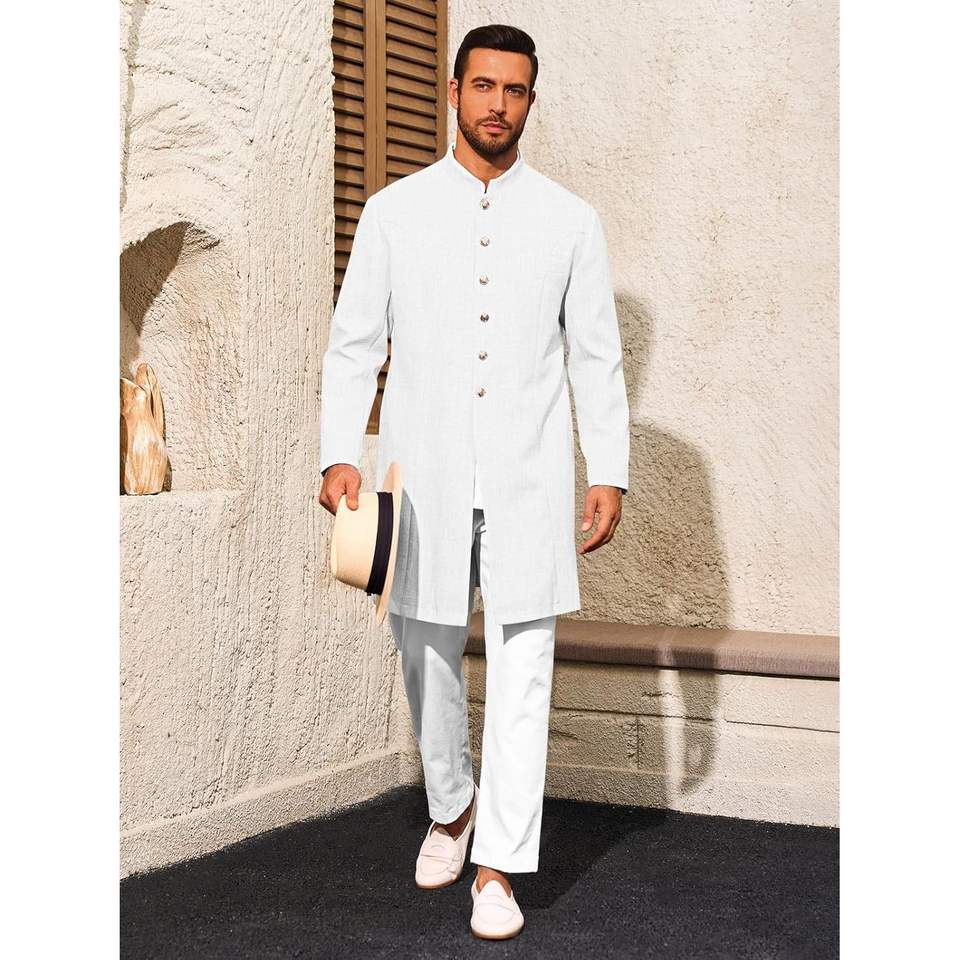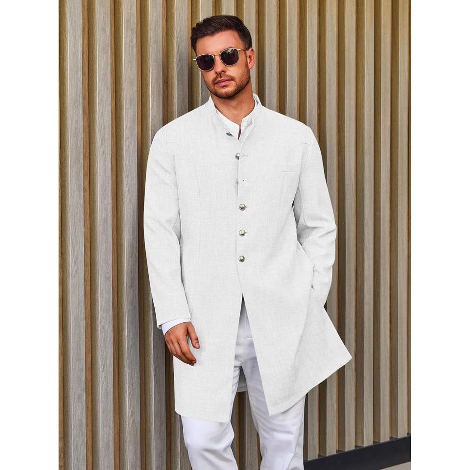 Abrigos Kurta de algodón para hombre 2025, trajes étnicos con cuello mandarín indio para bodas, fiestas festivas, bata caftán informal
