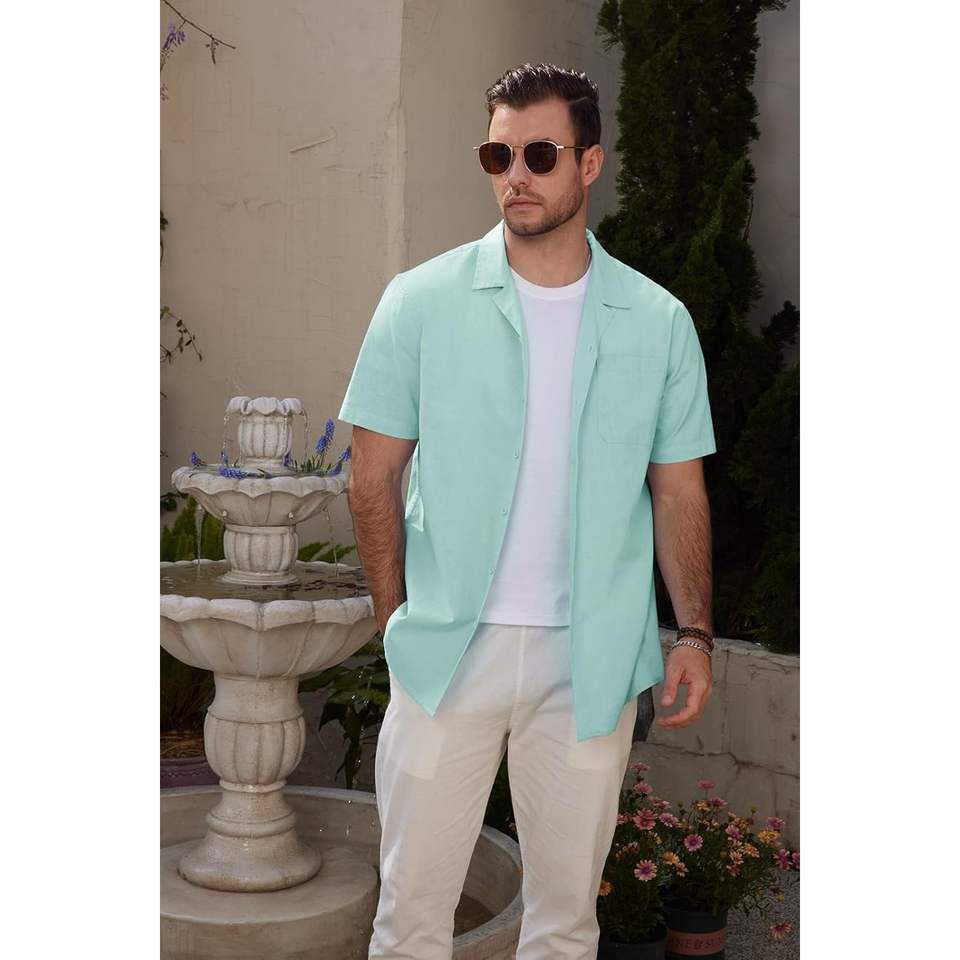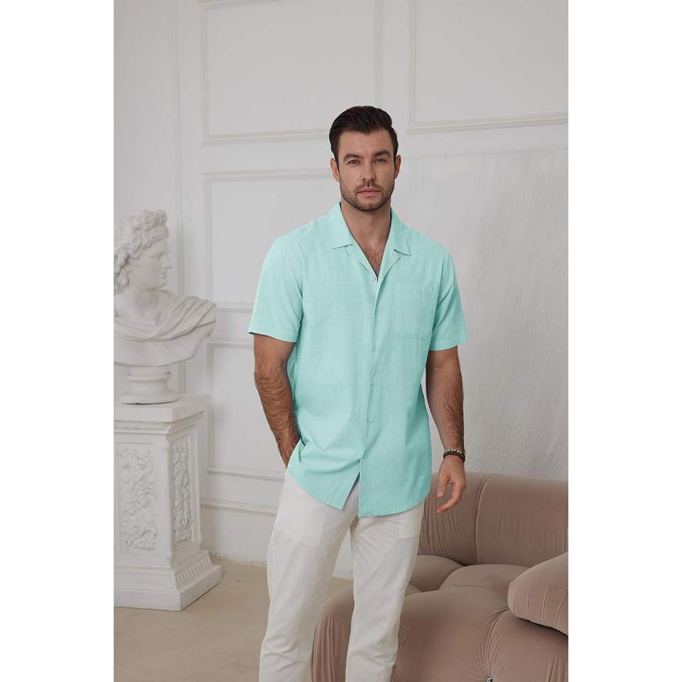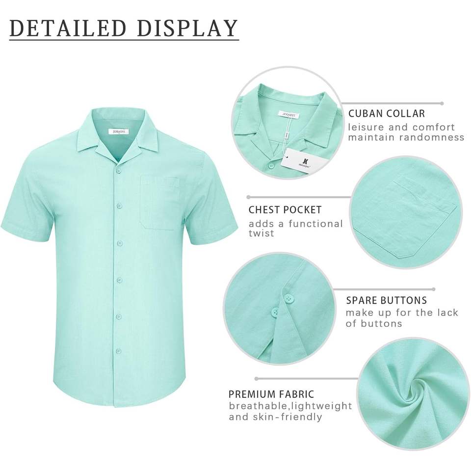2025 camisas casuales de lino y algodón para hombre, camisetas de manga corta con botones para vacaciones en la playa con tela tejida de tamaño de bolsillo 6XL