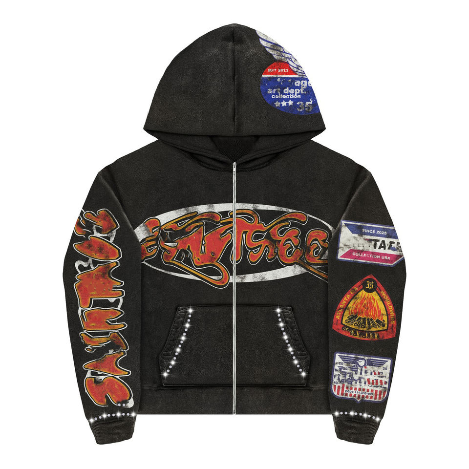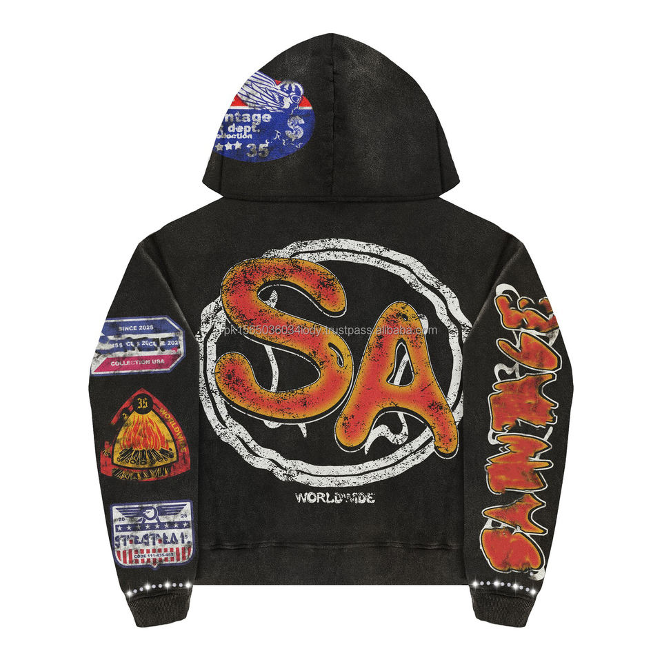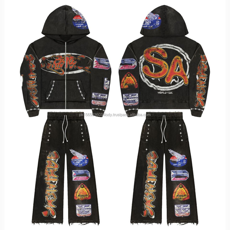 Conjunto Deportivo de Invierno para Hombre 2025, Talla Grande Personalizada, Lavado Ácido, Sudadera con Capucha Estampada en Serigrafía DTG, Técnica de Pedrería, Color Sólido