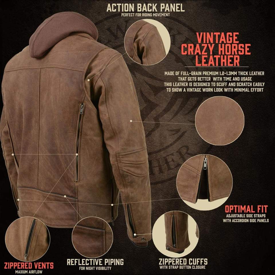 Chaqueta de Motociclista de Cuero Genuino Premium para Hombre 2025, Talla XS, Ventilada con Forro Desmontable, Técnicas de Teñido Liso