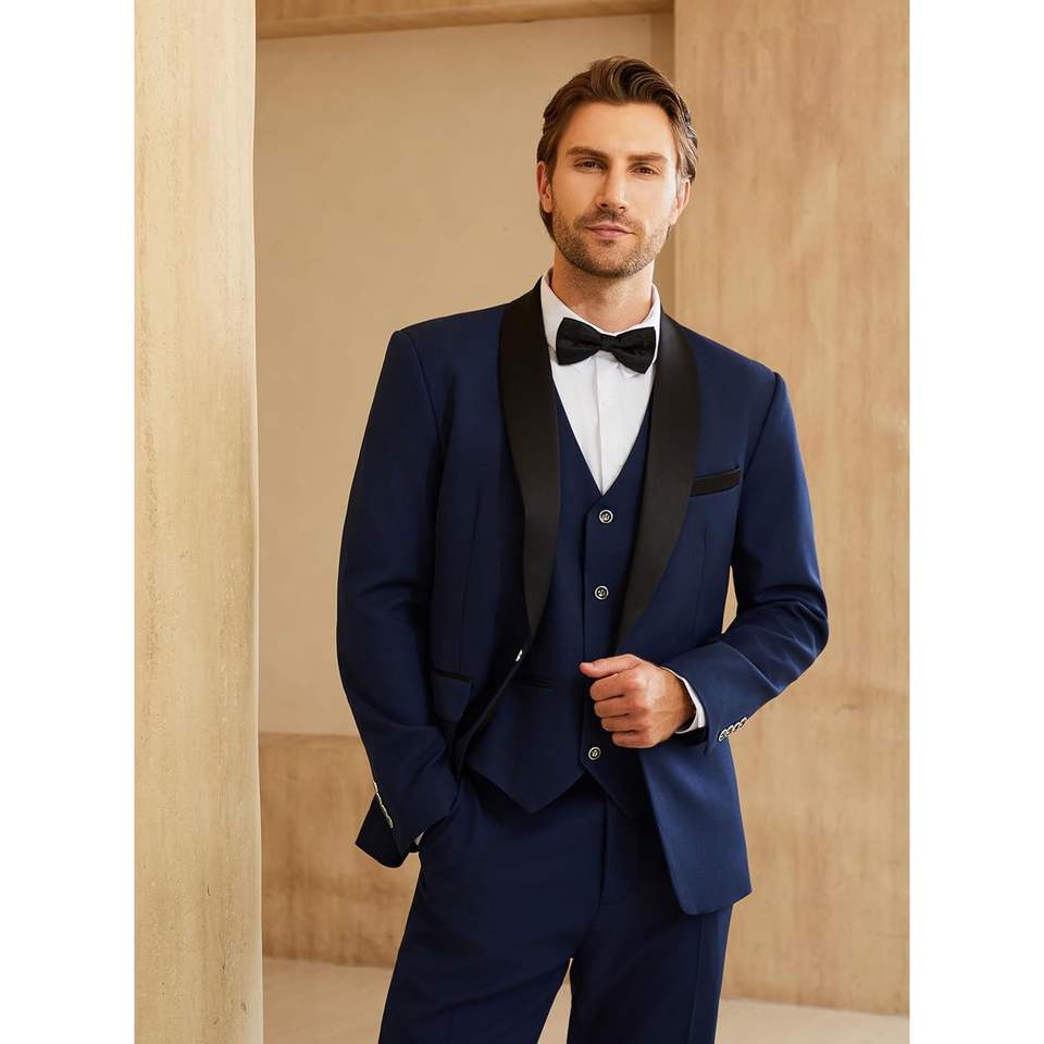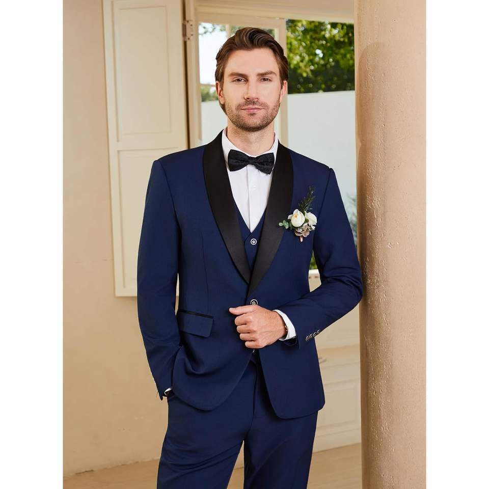Traje de Etiqueta de 3 Piezas para Hombre, Corte Entallado, Modelo 2025, Chaqueta Blazer con Solapa de Chal y un Botón, Chaleco y Pantalones, Talla XL, para Baile de Graduación, Negocios o Novio