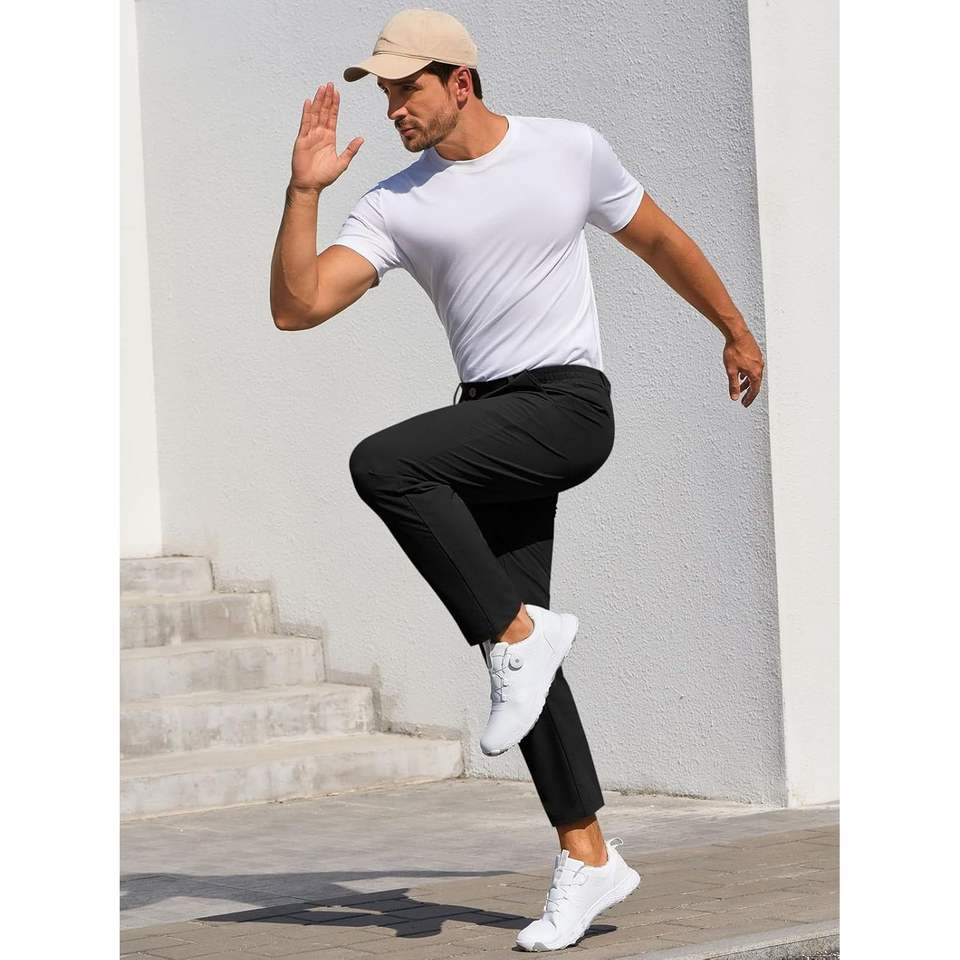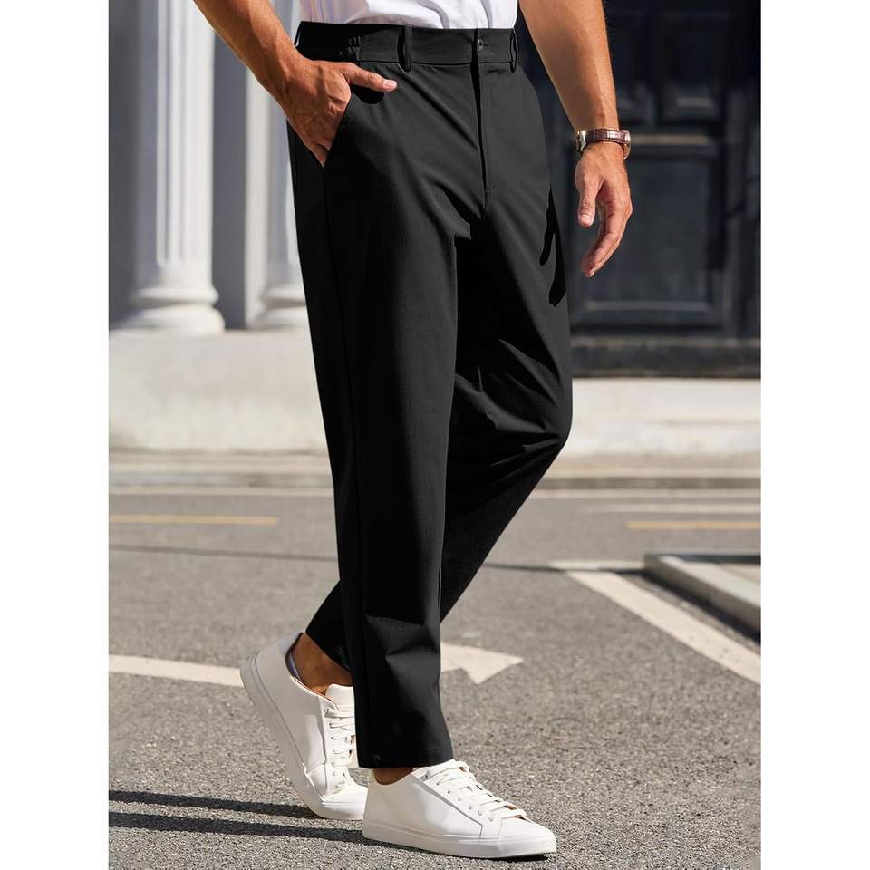 Pantalones de vestir ajustados para hombre 2025, pantalones recortados de trabajo cónicos con cintura elástica informal con estiramiento para Golf